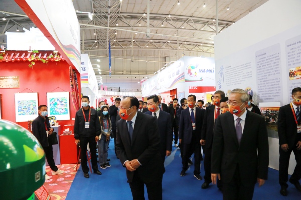 新疆维吾尔自治区党委副书记、自治区人民政府主席雪克来提·扎克尔和人力资源社会保障部党组成员、副部长汤涛等巡视展区