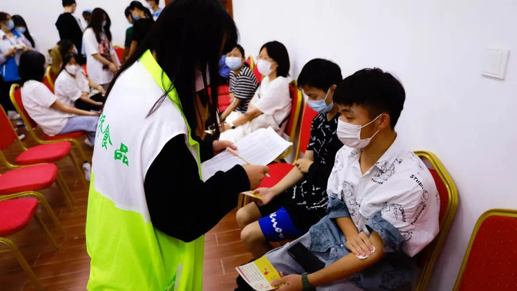 同学们在休息期间,志愿者们也尽心尽力地照顾同学们。