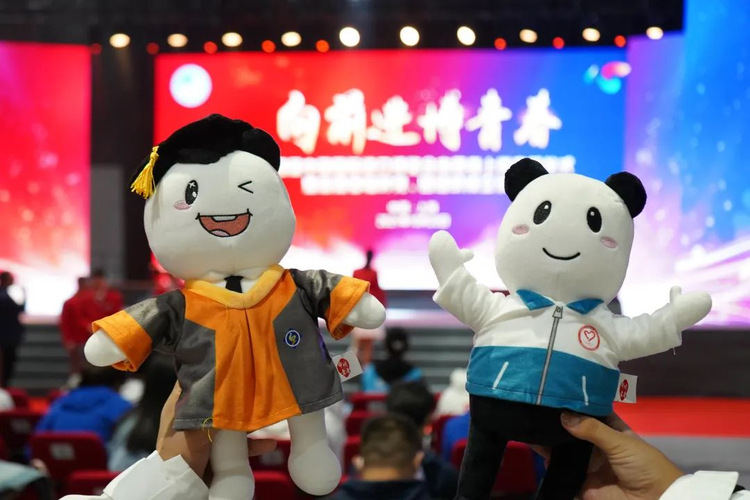 2018年10月30日,我校成立了临时党组织小组,也就是在这一天,我们的吉祥物“君宝”正式走入大众视野。“君”取自于我校地标性建筑君平塔,又隐含着进军进博会的雄心壮志——小叶,破土冲天。