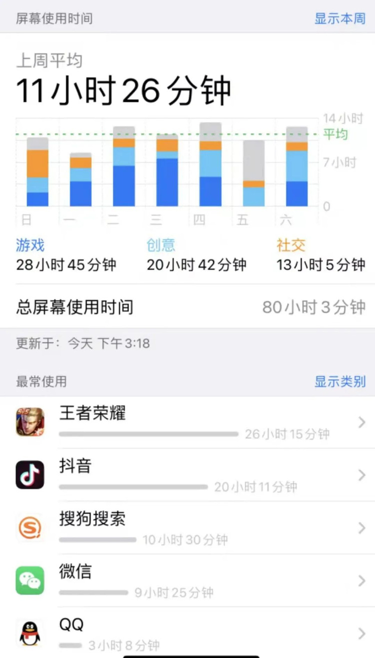屏幕使用时间:11小时