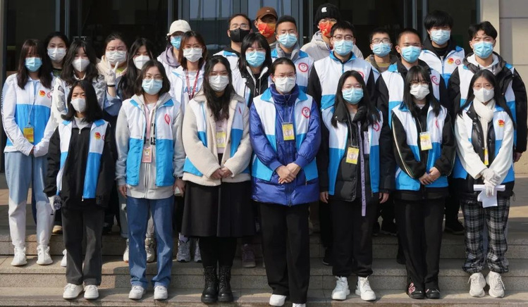 学校青年志愿者积极协助医护人员进行采样工作,维持现场秩序,确保核酸检测工作更好地进行。