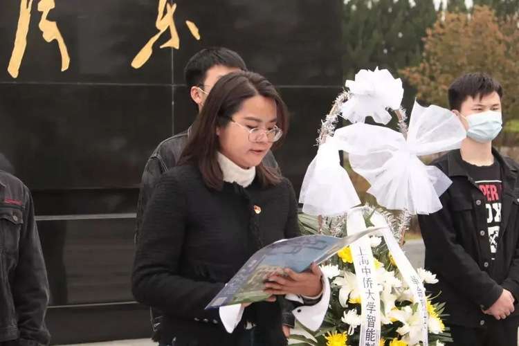 在缅怀仪式后,辅导员代表孜拉吉古力·热依木、学生代表刘雄分别向烈士献词,表示将接好时代“接力棒”,传承发扬革命先烈不怕牺牲、勇于斗争的革命传统精神,赓续共产党人精神血脉。