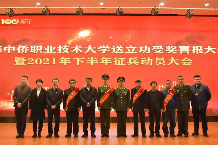 4月15日,在第六个全民国家安全教育日之际,金山区人武部、金山区双拥办、金山区退役军人事务局和上海中侨职业技术大学隆重举行送立功受奖喜报大会暨2021年下半年征兵动员大会,向荣立三等功的我校入伍学生刘巍同志及其家属送立功受奖喜报,带去党和政府对军人献身国防事业的褒奖。同时,召开2021年下半年征兵动员大会,部署和动员我校2021年下半年征兵工作。