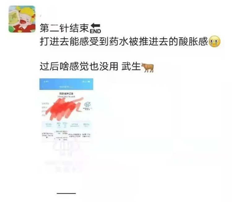 我打完第二针疫苗啦,积极响应国家号召,就是胳膊有点酸