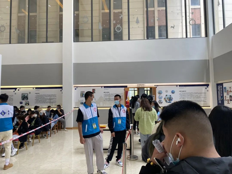 今天开放了第二针疫苗的接种,同学们响应国家号召,积极参与疫苗注射,图文信息楼从早晨八点半开始就人声鼎沸。接种完疫苗,同学们对疫苗的热情依旧难消......