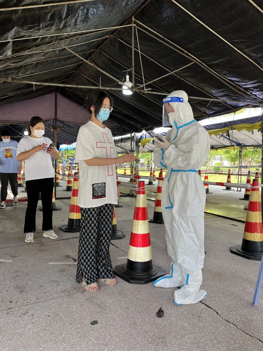 当志愿者已经有半个月之久了,其中我的岗位是负责了核酸扫码和维护现场做核酸的秩序。每天接触的人很多,每天会有各式各样的人来问各式各样的问题,这一项内容让我的口才得到了锻炼,同时也让我的胆子变大了,再不会不敢与人交流了。扫码这一项任务适应会有一些困难,因为穿上之后就不能再随便脱下,不然会有污染而且还会浪费一件防护服。医护人员们一定要做好消毒工作,每天要接触人给他们采样,保护他人的同时不能忽略了自己。我的感想就是所有一线人员还有医护人员都很辛苦,所以我们应该做好自己该做的事不给他们添麻烦,致敬所有医护人员!在接下来的一个月中我也会继续努力为他们做好后勤工作!