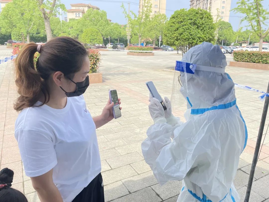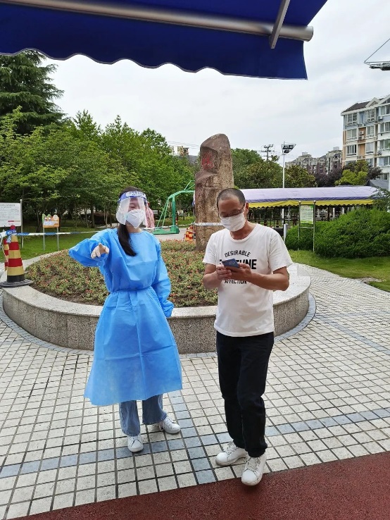 在东风居委会工作期间协助居委会的工作人员在街面上督促商户做好防护工作同时参加居委会组织的环境整治工作,在核酸点的岗位上担任扫码员一职,为前来做核酸的市民进行扫码登记。每天与医护人员进行扫码工作,正值盛夏穿着防护服站在房间里都感觉到燥热。连续半个月的工作,让我自己变得更加的成熟,让心中的使命感与责任感也更重了。切身体会了什么叫“哪有岁月静好,只因有人负重前行”,自己也成为了那个“逆行者”。