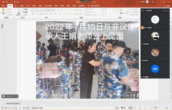 孙嘉慧组织线上了解花馍的历史 ,通过查阅网络资料和队员介绍初步认识花馍。刘梦圆采访花馍非遗传承人王娟老师,带着团队深入了解花馍现状和传承的困难。组织学习花馍制作过程、在抖音上开设直播间介绍花馍,让花馍进入大众眼帘,走入年轻人的世界。同时在线上举行花馍体验活动,让青年人学习花馍制作过程,并且传授给身边的同学。一起将非遗传承下去,从传统到当下,又从当下延续到未来,让花馍成为永恒的经典。
