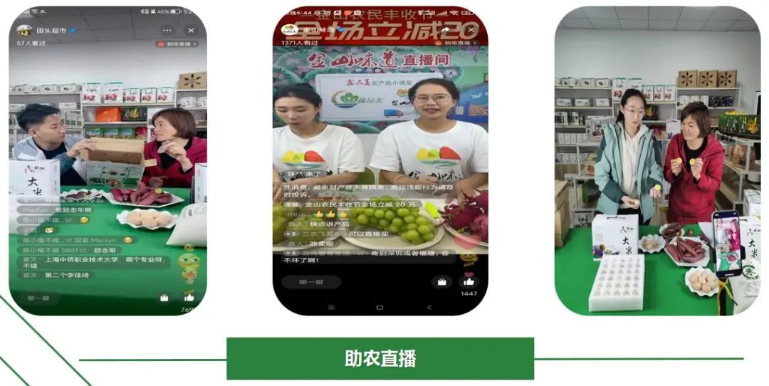 助农帮农:信息工程学院分团委根据金山当地农户现在所面临的问题,开展多场助农直播,教授农民直播技巧,补足农业产品营销短板。针对品牌化缺乏现象,助力打造品牌化农产品助力产销对接,提升农产品知名度。除了数字助农外,信息工程学院分团委还打造文旅结合新方式。结合独具特色的“百花节”“金山蟠桃节”等系列节庆活动,探索从踏青赏花,走马观花的观光旅游向深度体验过渡的“文旅结合”新模式。