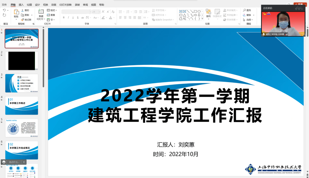 刘奕蕙同学通过简短的视频汇报建筑工程学院近期工作与完成情况,表明今后将认真落实“全心全意为同学们服务”的工作宗旨,坚持为同学做好事、做实事,抓好每一个细节,做实每一件事情,努力构建和谐校园。