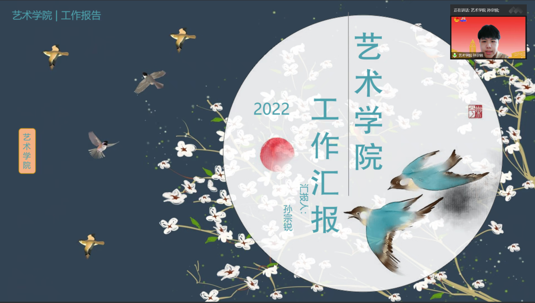 孙宗锐同学交流分享了艺术学院学生会近期举办的活动,表明今后将不断讨论、研究如何更大地发挥出活动的价值,使更多的同学受到感染和吸引,以此来培养同学们的兴趣爱好。同时艺术学院学生会也将按照原先的工作计划开展新的宣传专栏,让同学们感受大学生活的温暖与欢乐。